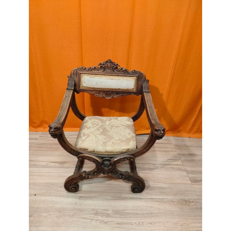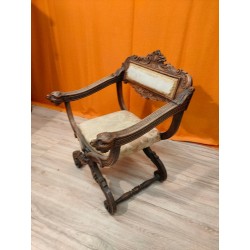 Poltroncina in legno di noce massello epoca primi anni del 900 stile rinascimentale ancora da restaurare ed imbottire. Restauro Euro 90 fuori imbottitura