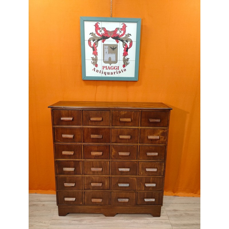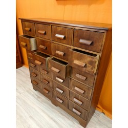 Mobile cassettiera in legno di pioppo massello epoca anni 30/40 provenienza Piemonte perfettamente restaurato composto da 24 cassetti con maniglie in legno