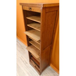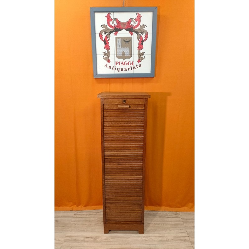 Mobile serrandina schedario in legno di rovere anni 40/50 . Perfettamente funzionante sia la tapparella che la serratura,si compone all'interno di ben 9 ripiani spostabili ed estraibili robusti con bordino frontale . Colore del mobile rovere biondo.