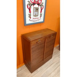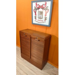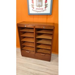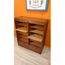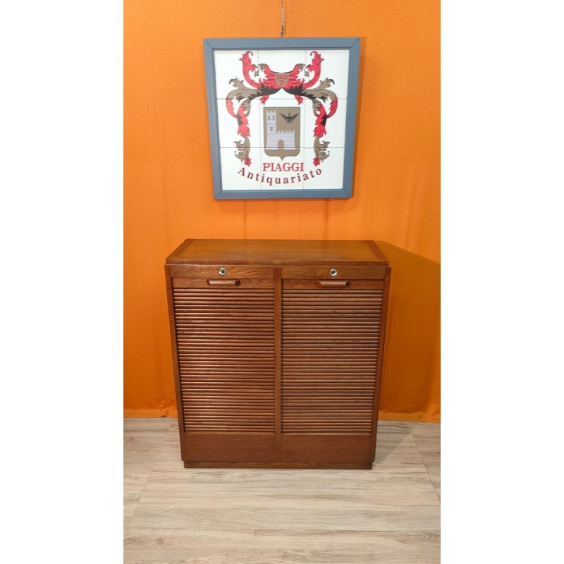 Mobile serrandina schedario doppia in legno di rovere massello anni 40 provenienza Lombardia.Perfettamente restaurata si presenta con vari ripiani spostabili,tapparella e chiusura serrature perfette ,mobile adatto a qualsiasi locazione maniglie in legno e colore del mobile rovere naturale